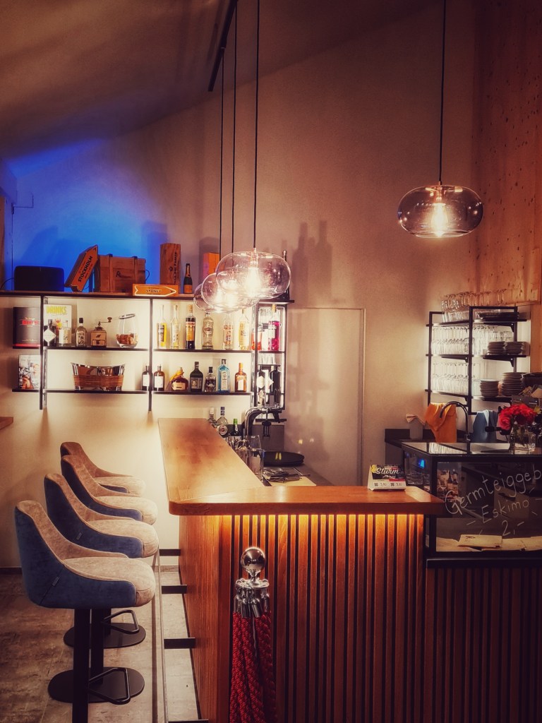 Im Inneren wurde alten Einrichtungsgegenstände wie Sessel und Kommoden wieder neues Leben eingehaucht und durch die Kombination mit moderenen Materialen werden Akzente gesetzt die Besucher zum Verweilen und Genießen einladen.