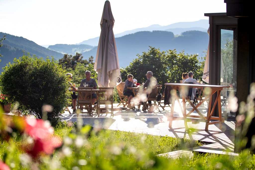 Hausgemachte Kuchen und der Blick in Richtung der geschichtsträchtigen Burg Rothenfels im Südosten oder in das sagenhafte Wölzertal im Westen runden das einzigartige Ambiente ab.